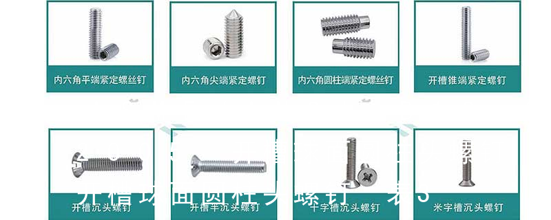 1)开槽普通螺钉多用于较小零件的连接。它有盘头螺钉、圆柱头螺钉、半沉头螺钉和沉头螺钉。盘头螺钉和圆柱头螺钉的钉头强度较高,瑁在普通的部件连接上;半沉头螺钉的头部呈弧形,安装后它的顶端略外露,且美观光滑,一般