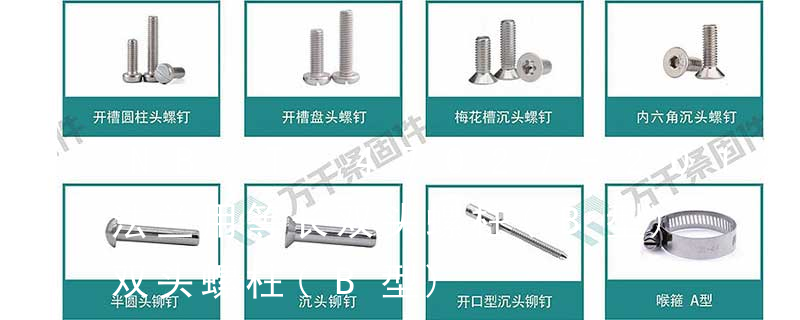 ⑤螺柱类:双头螺栓、等长双头螺柱(A型B型)、特长双头(铜、铁、铝、不锈钢)⑥、紧定螺钉类:内六角平端紧定螺丝、内六角尖端紧定螺丝、内六角凹端紧定螺丝、⑦、销类:开口销、圆柱销、圆椎销、弹性圆柱销、销轴、普